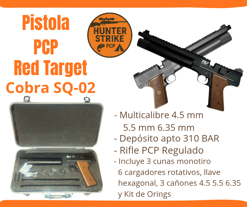 Caracteristicas principales de la pistola PCP Red Target Cobra SQ-02 Multicalibre: